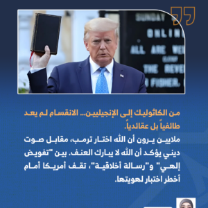 غير أن الأمر يتجاوز مجرد الورطة الانتخابية؛ فما يكشفه هذا الصراع في حقيقته هو أن الانقسام الديني في أمريكا لم يعد يسير على خطوط طائفية كما كان في الماضي، بل انتقل إلى ما هو أعمق وأشد خطورة. فبينما يرى ستة من كل عشرة إنجيليين بيض أن الله قدّر لترمب الفوز، ويمنحونه بذلك تفويضاً يتجاوز حدود السياسة إلى حدود العقيدة، نجد في المقابل بابا يعلن أن الله لا يبارك الحروب ولا يسمع صلوات من تلطّخت أيديهم بالدم. وبين هذين الموقفين المتناقضين لا مساحة للحوار، لأن كليهما يتحدث “باسم السماء”.
