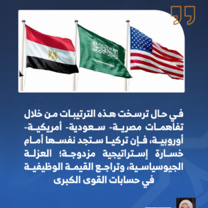 ولعل تخوف أنقرة الجوهري يرتبط بتحولات أوسع في النظام الدولي، فمع تصاعد التنافس بين القوى الكبرى خاصة بعد عودة الرئيس الأمريكي دونالد ترمب إلى الحكم، تتزايد أهمية الأطر الإقليمية شبه المؤسسية التي تُستخدم كمنصات لتنسيق المواقف، أو لتأمين المصالح الاقتصادية، وإذا ما انخرطت العواصم العربية المركزية في هذه الأطر دون تركيا، فإن هامش مناورتها الدولية قد يتقلص، خاصة في ملفات تتقاطع فيها مصالحها مع أوروبا، أو الولايات المتحدة، أو حتى الصين وروسيا؛ لذلك فإن التقارب مع مصر والسعودية يمنح أنقرة مظلة عربية أوسع، ويعزز قدرتها على التفاوض من موقع الاندماج في مستقبل النظام الدولي.