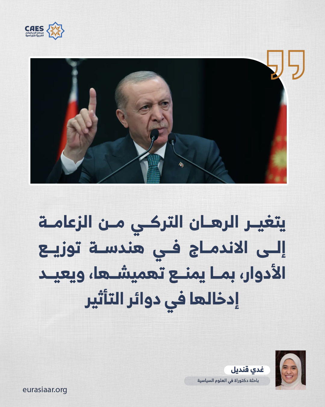 بناءً عليه، فإن اختزال الزيارة في إطار تحسين العلاقات الثنائية، أو جذب الاستثمارات، يُعد قراءة قاصرة؛ فالدلالة الأعمق تكمن في كونها خطوة ضمن عملية إعادة تموضع إستراتيجي تركي داخل نظام إقليمي قيد التشكل، تسعى من خلالها أنقرة إلى الانتقال من موقع الفاعل التصادمي إلى موقع الشريك المرن المتعدد المسارات، لإعادة هندسة شبكة العلاقات الإقليمية على أسس جديدة، تتجاوز إرث الاستقطاب، وتستجيب لواقع إقليمي بات أكثر تعقيدًا وتشابكًا مما كان عليه قبل عقد من الزمن.