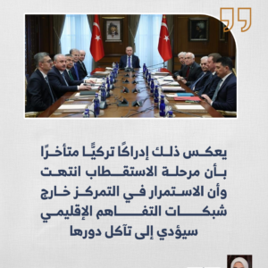 ولكن ابتداءً من أواخر العقد الثاني من القرن الحادي والعشرين، بدأت ملامح تحول نوعي في بنية النظام الإقليمي، وبرز نمط أكثر تعقيدًا يقوم على تعددية مراكز القوة، وتداخل مسارات التعاون والتنافس في آن، وبعد سنوات من تبني أنقرة سياسة خارجية تصادمية، اتسمت بالرهان على منطق المحاور، والتوسع الأيديولوجي، وتوظيف الصراعات الإقليمية كأدوات نفوذ، بدأ هذا النموذج يفقد جدواه مع تراجع موجة التغيير الثوري في الإقليم، وصعود أولويات الاستقرار والتنمية لدى القوى العربية المركزية، فضلًا عن إعادة ترتيب العلاقات الإقليمية على أساس المصالح لا الهويات.