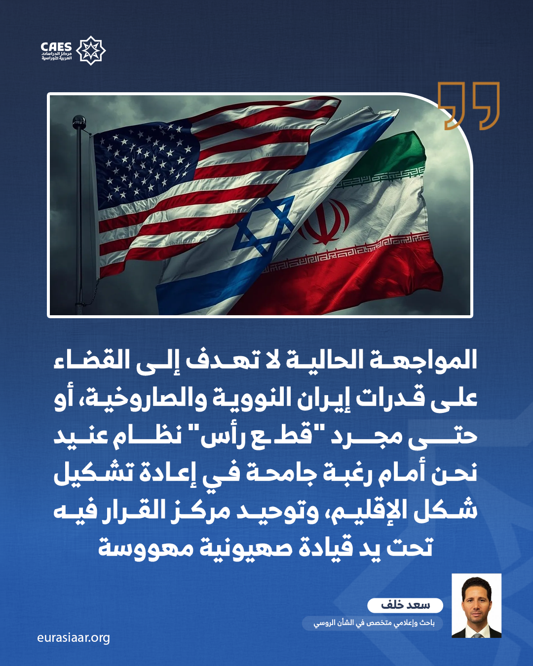 وهذا التوصيف الروسي، على الرغم من كونه بالطبع توصيفًا قانونيًّا، يتخفى وراءه فهم روسي واضح أن ما يحدث ليس محاولة ضرب لبرنامج إيران النووي والصاروخي؛ وإنما محاولة فجة لإعادة صياغة قواعد اللعبة في الشرق الأوسط.