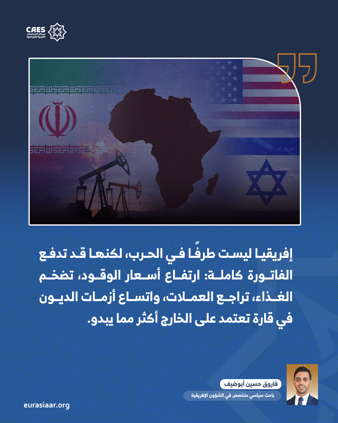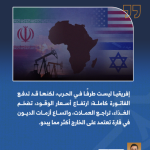 ختامًا، وفي ضوء ما سبق طرحه، يمكن القول إن الحرب الإيرانية لم تعد مجرد أزمة إقليمية محصورة في نطاق الشرق الأوسط، بل تحولت إلى متغير ضاغط يعيد التأثير في توازنات القارة الإفريقية اقتصاديًا وأمنيًا وسياسيًا. فقد كشفت هذه الحرب حجم انكشاف إفريقيا على الصدمات الخارجية، سواء عبر أسواق الطاقة والغذاء، أو عبر الممرات البحرية الحيوية، أو من خلال إعادة تشكيل التحالفات الدولية داخل القارة.