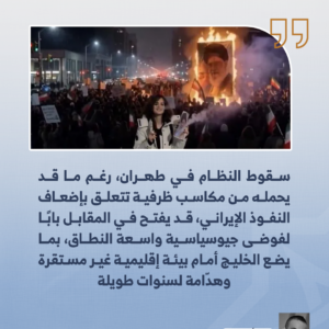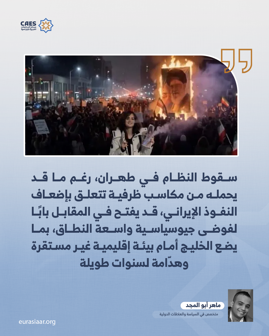 يدرك الخليج، الواقع في مرمى النيران، أن السيناريوهات المرسومة في واشنطن وتل أبيب لا تتوافق مع أولوياته الاستراتيجية. فسقوط النظام في طهران، رغم ما قد يحمله من مكاسب ظرفية تتعلق بإضعاف النفوذ الإيراني، قد يفتح في المقابل بابًا لفوضى جيوسياسية واسعة النطاق، تمتد آثارها إلى العراق وسوريا ولبنان واليمن، بما يضع الخليج أمام بيئة إقليمية غير مستقرة وهدّامة لسنوات طويلة.