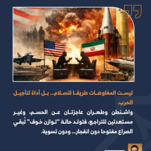 سنظل، في المدى القريب، أمام حالة من اللاحرب واللاسلم، حيث تستمر الأزمة في ظل مزيج من التفاوض والضغط، إلى أن تسمح تحولات أعمق في ميزان القوى بإعادة صياغة قواعد اللعبة. وحتى يحين ذلك، ستظل كل جولة تفاوضية محاولة لتأجيل المواجهة الشاملة، لا لإنهائها.