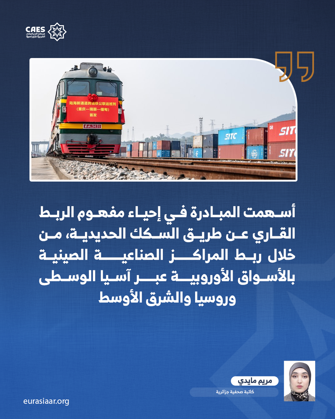 تشكل مشروعات السكك الحديدية والمواصلات البرية بين الشرق الأوسط وأوراسيا نقطة تحول إستراتيجية في بنية الاقتصاد العالمي، فبالإضافة الى كونها أدوات نقل، أصبحت مشروعات النقل المتنوعة في القارة الأوراسية رافعات للنفوذ الاقتصادي والجيوسياسي. فالممرات البرية بدورها تعيد رسم خرائط التجارة الدولية، وتخلق شبكات ترابط اقتصادي مباشر بين القارات، مع إحداث مراكز صناعية ولوجستية جديدة على طول مساراتها. ومع توسع هذه الشبكات، يتحول الإقليم العربي إلى محور حيوي في حركة التجارة العالمية، ويكتسب تأثيرًا كبيرًا في تحديد اتجاهات الاقتصاد الدولي وموازين القوة بين الدول الكبرى.
