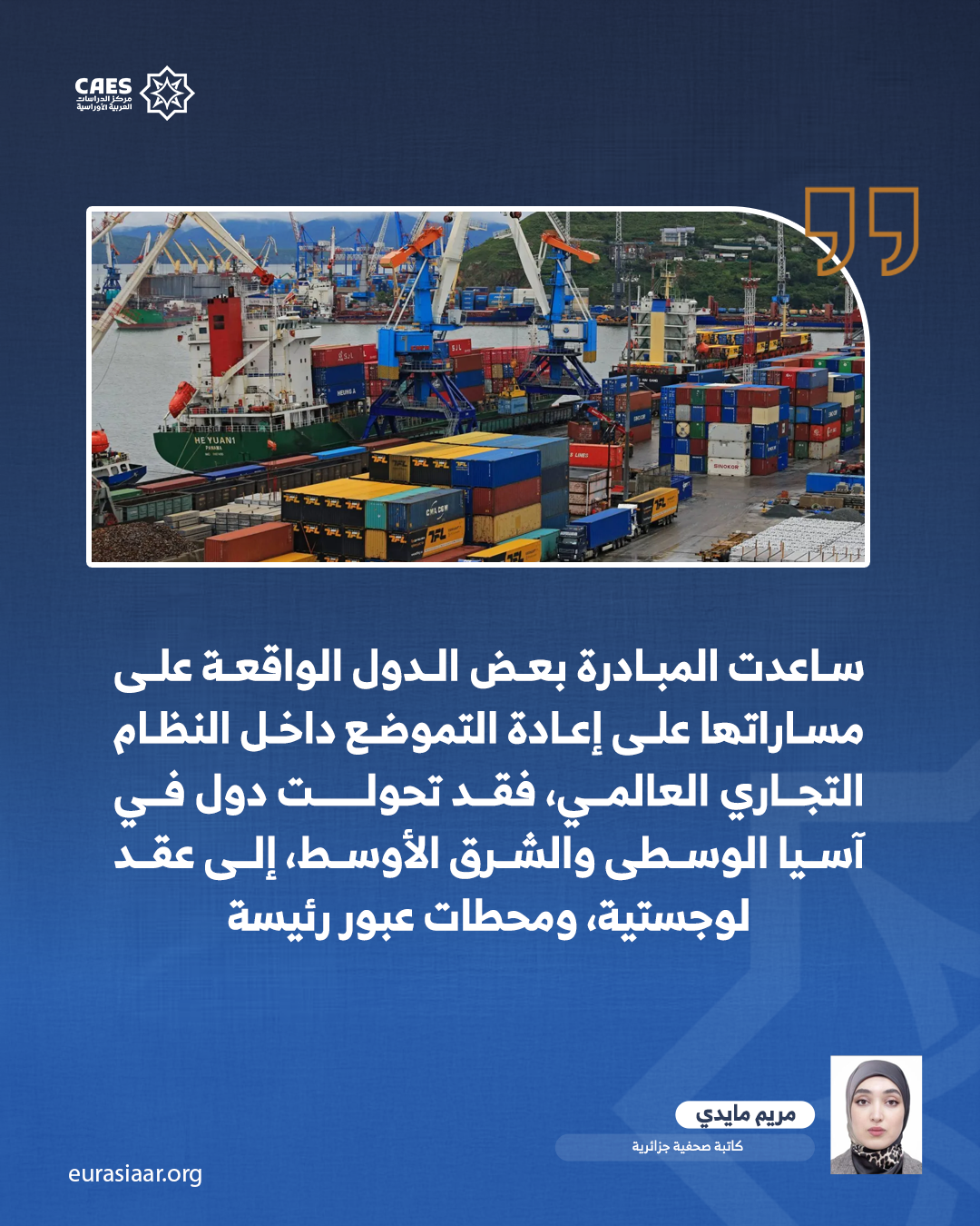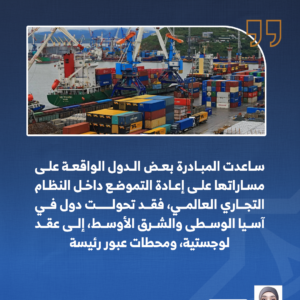 كما أدت المبادرة إلى إعادة تموضع عدد من الدول الواقعة على مساراتها داخل النظام التجاري العالمي، فقد تحولت دول في آسيا الوسطى، إضافة إلى بعض دول الشرق الأوسط، إلى عقد لوجستية، ومحطات عبور رئيسة، مستفيدة من الاستثمارات الصينية في البنية التحتية للسكك الحديدية، والمواني الجافة، والمناطق الصناعية. وأسهم هذا التحول في دمج هذه الدول على نحو أعمق في سلاسل القيمة العالمية، ومنحها دورًا يتجاوز كونها مجرد مناطق عبور إلى شركاء اقتصاديين ضمن شبكة تجارية واسعة النطاق.
