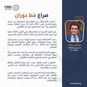 في الختام، يُبرز الصراع الأفغاني- الباكستاني، الذي يستمر في إنتاج دورات من العنف والتوترات الإقليمية، كيف يظل الإرث الاستعماري لخط دوران قيدًا يقيد الاستقرار في جنوب آسيا، مع تداعيات تتجاوز الحدود لتشمل الأمن الإقليمي بكامله. قد يُعيد دور الهند كعامل توازن رسم الخريطة الجيوسياسية، من خلال تقاربها المتزايد مع طالبان، لكن هذا التقارب وحده لا يكفي لكسر الدائرة؛ إنما يتطلب السلام اعترافًا مشتركًا بخط دوران كأساس للحوار، وجهودًا ملموسة للتنمية المشتركة، مثل مشروعات الطاقة والتجارة عبر الحدود، بالإضافة إلى آليات إقليمية لمكافحة الإرهاب تتجاوز الاتهامات المتبادلة. من دون هذه الخطوات المسؤولة، سيظل النزاع مصدرًا للعنف المستمر، يهدد بتحويل جنوب آسيا إلى برميل بارود ينفجر؛ لذا يجب على القادة في كابُل وإسلام آباد ونيودلهي التحرك نحو اتفاق دائم، كضرورة حتمية لمستقبل المنطقة بأسرها.