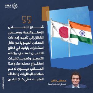 تعتمد الهند اعتمادًا كبيرًا على الواردات من تايوان وكوريا الجنوبية؛ مما يجعلها عرضة لاضطرابات سلاسل التوريد، كما حدث خلال النقص العالمي في 2021- 2022. اليابان تسعى إلى استعادة مكانتها بوصفها مركزًا لتصنيع الرقائق من خلال استثمارات ضخمة، مثل دعمها مصنع TSMC في كيوشو بقيمة 3.2 مليار دولار. أما المعادن الإستراتيجية، مثل الليثيوم والكوبالت، فهي ضرورية لصناعة البطاريات والطاقة المتجددة، ويواجه كلا البلدين تحديات في تأمين إمدادات مستدامة في ظل التنافس العالمي مع الصين.