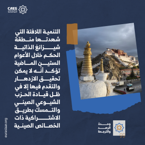 إنّ التنمية اللافتة التي شهدتها المنطقة الذاتية الحكم خلال الأعوام الستين الماضية تؤكد -بجلاء- أنّه لا يمكن تحقيق الازدهار والتقدم فيها إلا في ظل قيادة الحزب الشيوعي الصيني، والتمسك بطريق الاشتراكية ذات الخصائص الصينية، وتكريس نظام الحكم الذاتي القومي الإقليمي، والالتزام بتوجيهات الحزب بشأن حوكمة شيزانغ في العصر الجديد، بما يمكّن أبناء جميع القوميات في شيزانغ من عيش حياة سعيدة.