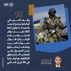يتحرك الرئيس ترمب نحو وقف الحرب في أوكرانيا، والتوصل إلى اتفاقية سلام بفهم ووعي كبير للمصالح الأمريكية. ففي البداية، أوقف ترمب أي خطط لتزويد أوكرانيا بمزيد من الذخيرة والسلاح الأمريكية حتى لا تستنزف مخازن السلاح الأمريكية، ثم بعد ذلك تعامل بواقعية كاملة مع تفاصيل الصراع، بما سمح له في النهاية أن يقود هذه الجهود نحو وقف الحرب، الذي يمكن أن يحقق للولايات المتحدة عددًا من المكاسب، منها: