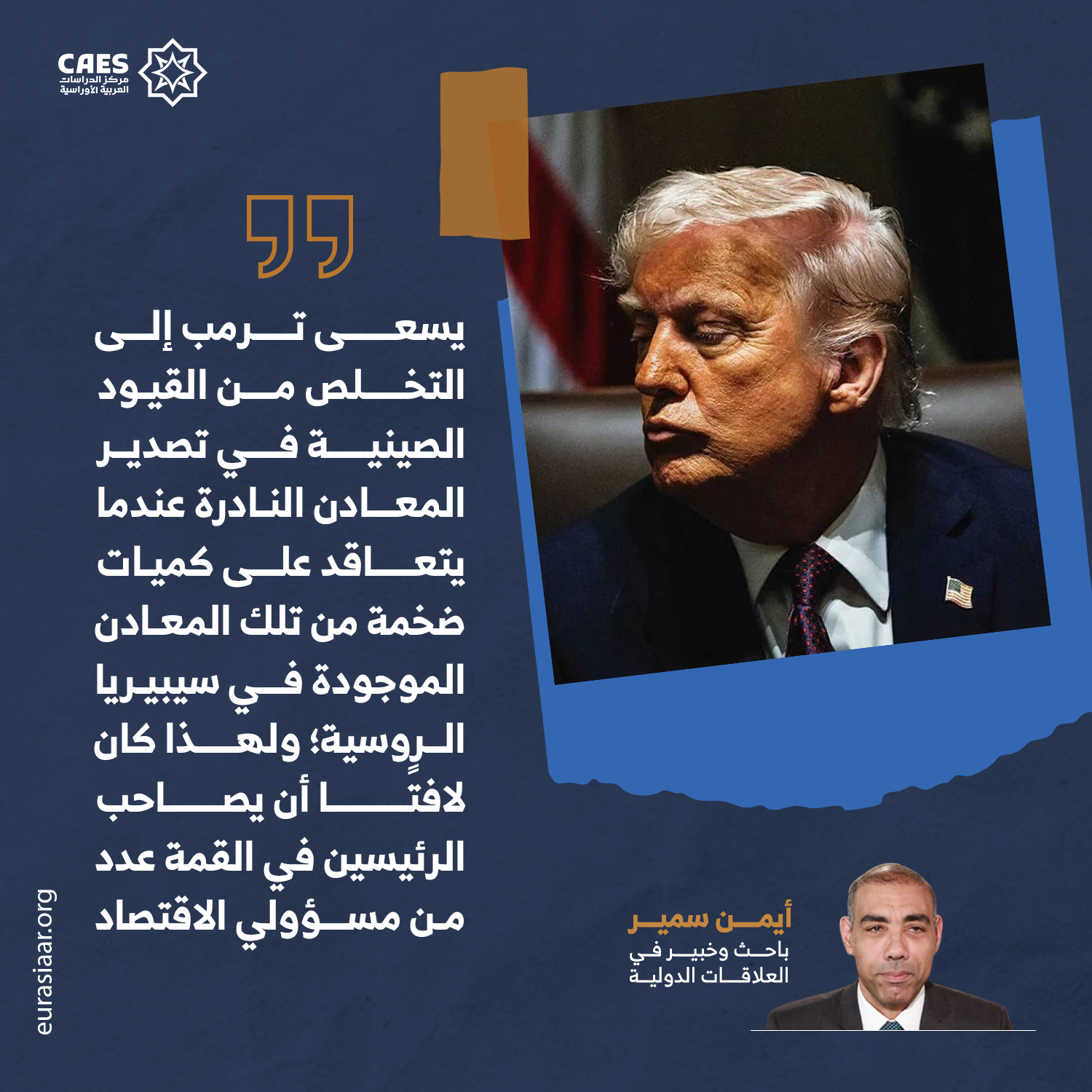 وقف الحرب في أوكرانيا يسمح للرئيس ترمب باسترداد ما يقول إنها 350 مليار دولار قدمتها بلاده لأوكرانيا طوال سنوات الحرب. وبعد وقف الحرب، يستطيع ترمب الحصول على “المعادن النادرة” وفق الاتفاق الذي وقعه مع أوكرانيا في 30 أبريل (نيسان) الماضي. كما أن ترمب يستطيع أن يتعاقد مع روسيا على شراء “مادة الليثيوم” التي تدخل في صناعة البطاريات الكهربائية والأقمار الصناعية، وهي من المعادن النادرة التي توجد بكثرة في المناطق الخاضعة لروسيا في المقاطعات الأربع: خيرسون وزاباروجيا ولوغانسك ودونيتسك. ويسعى ترمب إلى التخلص من القيود الصينية في تصدير المعادن النادرة عندما يتعاقد على كميات ضخمة من تلك المعادن الموجودة في سيبيريا الروسية؛ ولهذا كان لافتًا أن يصاحب الرئيسين في القمة عدد من مسؤولي الاقتصاد، مثل وزير المالية الأمريكية، ومدير صندوق الاستثمار الروسي.