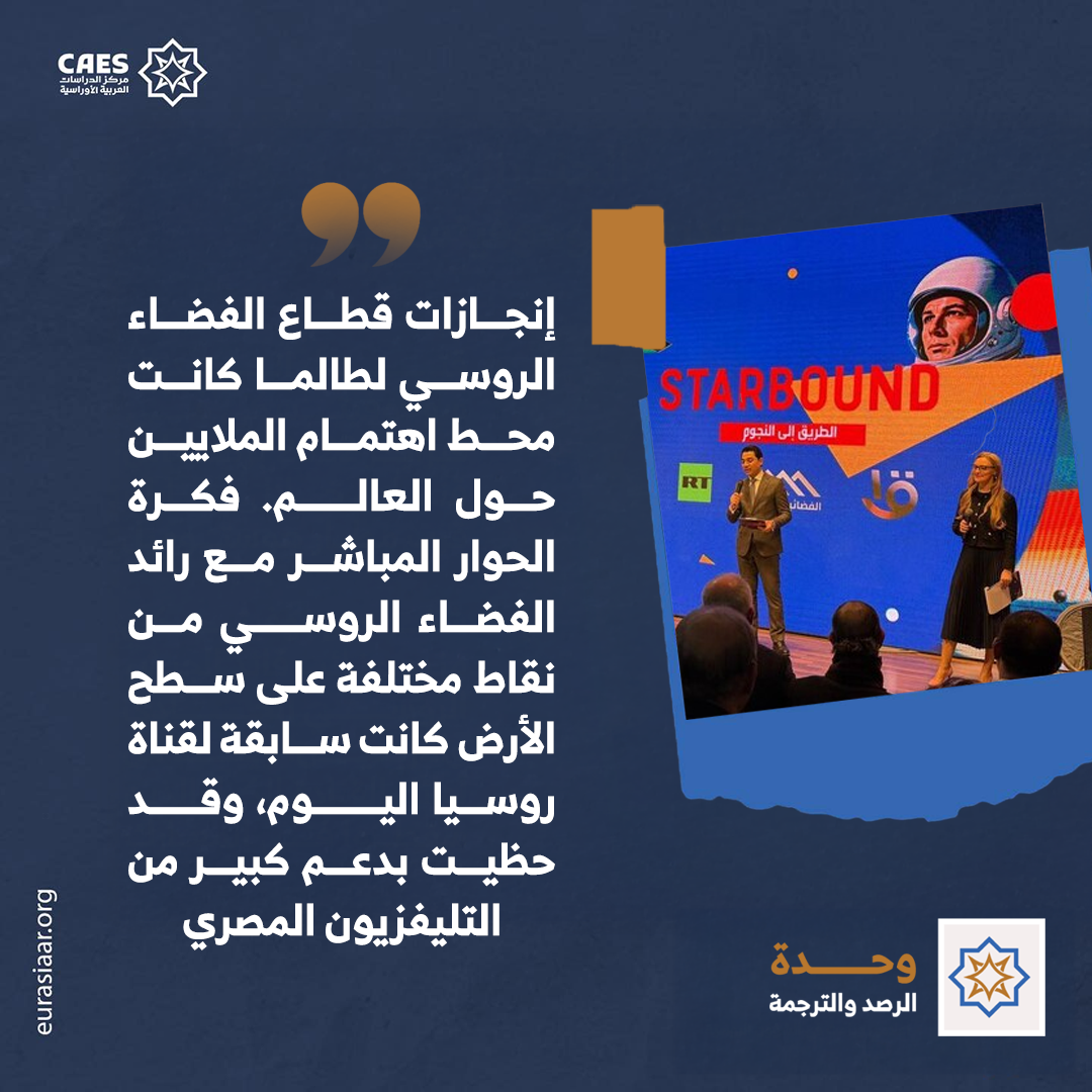 تنظم قناة روسيا اليوم (RT Arabic)، بالتعاون مع القناة الفضائية والقناة الأولى المصرية في جمهورية مصر العربية، العرض الأول الخاص لبرنامجها المشترك الجديد تحت عنوان الطريق إلى النجوم (STARBOUND).