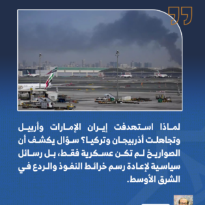 فلو كان الدافع محصوراً بالمصالح الأمريكية المباشرة، لكان من المنطقي توجيه الضربات نحو مسارات الإمداد الأكثر حساسية، كخطوط الربط الأذري–التركي التي تُعد أحد المسارات الداعمة للعمليات الإسرائيلية. إلا أن تجاوز هذه الأهداف، والتركيز على الإمارات بكثافة نارية لافتة، يشير إلى أن الهدف يتجاوز “تعطيل القدرة” إلى “إعادة تشكيل الرسالة”.