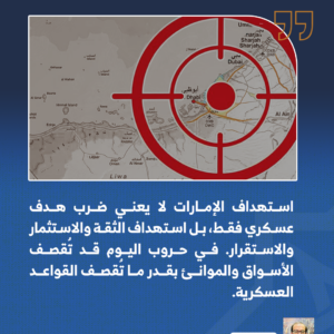 الإمارات هنا لا تُقرأ كهدف عسكري بحت، بل كرمز لنموذج إقليمي صاعد يقوم على الاستقرار الاقتصادي والانفتاح والاستثمار العالمي، وهي في الوقت ذاته لاعب متقدم في مسارات التطبيع وإعادة التموضع في الشرق الأوسط. وبالتالي، فإن استهدافها لا يهدف فقط إلى إحداث ضرر مادي، بل إلى تقويض “رأسمالها الرمزي” القائم على الثقة والاستقرار.