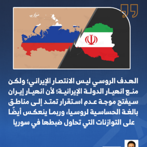 في الواقع، ولكي أكون صريحًا حسب فهمي طبعًا، الهدف الروسي ليس الانتصار الإيراني؛ ولكن منع انهيار الدولة الإيرانية؛ لأن انهيار إيران سيفتح موجة عدم استقرار تمتد إلى مناطق بالغة الحساسية لروسيا، وأقصد في المقام الأول القوقاز وآسيا الوسطى، وربما ينعكس أيضًا على التوازنات التي تحاول ضبطها في سوريا للحفاظ على وجودها العسكري بها.