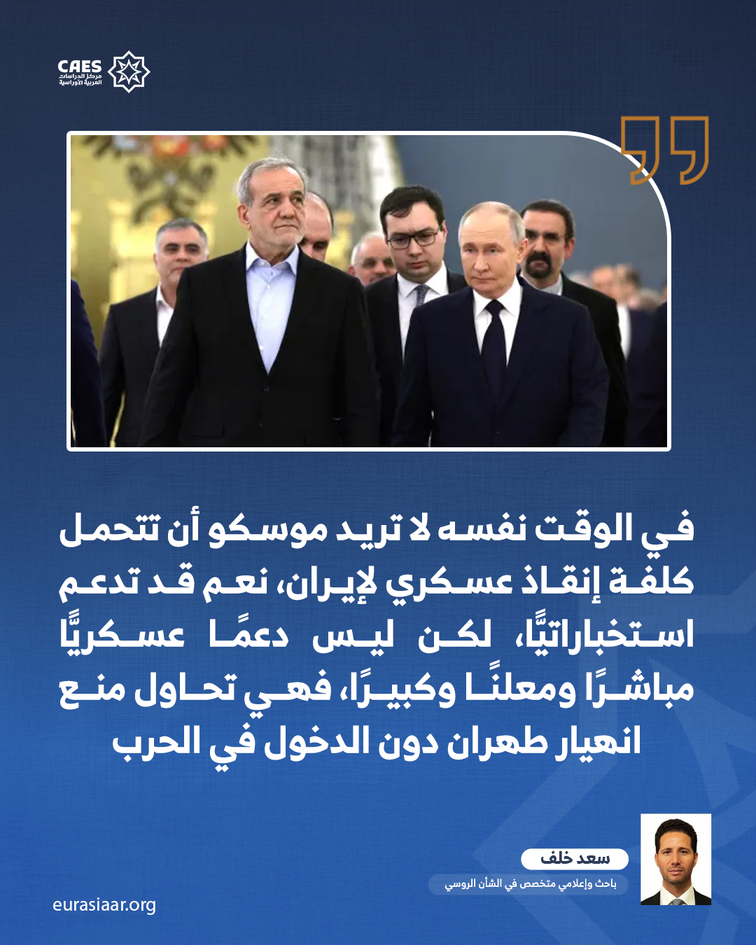 ومع ذلك تجد موسكو نفسها أمام معادلة صعبة، وهي كيف تضمن منع انهيار إيران دون إنقاذها عسكريًّا؟!