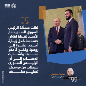ينصح الخبراء الروس بالإجماع بضرورة إزالة قضية الأسد من الأجندة الثنائية، مؤكدين أن التركيز يجب أن يكون على تطوير العلاقات المستقبلية، وتوقيع اتفاقيات جديدة بناءً على المصالح المشتركة.