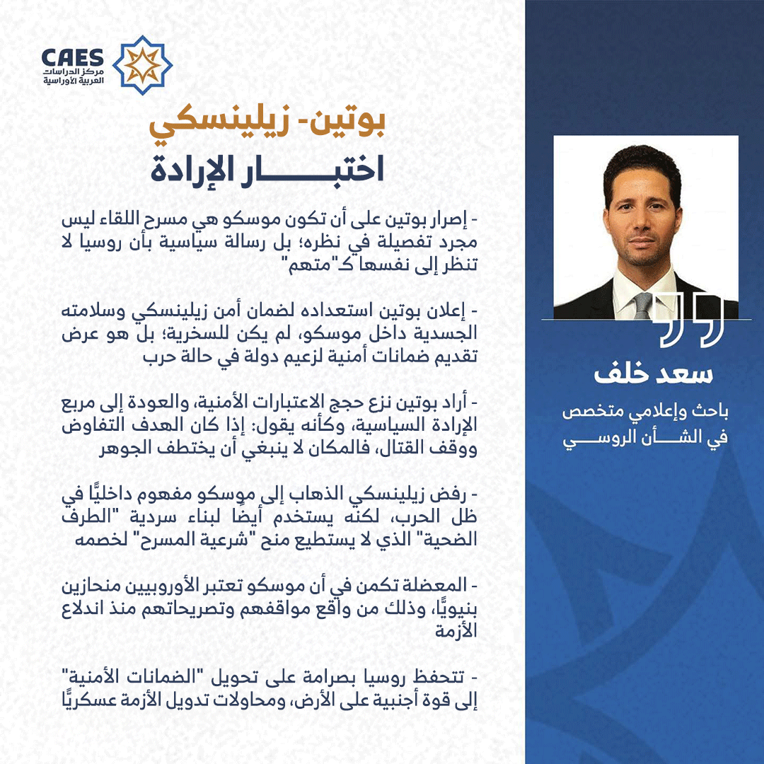 إذن، ما الذي تريده موسكو فعلًا؟ يسعى بوتين -من وجهة نظري وواقع فهمي- إلى تثبيت المعادلة التالية: لا عودة تلقائية إلى ما قبل عام 2022.. ولا قبول بصيغة “قوات ضمان” أجنبية تصبح هدفًا مشروعًا للجيش الروسي، وتجر الجميع إلى اشتباك أوسع.