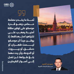 في هذا الخصوص، ثمة ما يخدم مصلحة حماس، وهو قدرة موسكو على توفير مظلة أمنية يصعب على نتنياهو استهدافها، إذ يوقن جيدًا أن موسكو ليست طهران، أو دمشق، أو بيروت، أو الدوحة، وأن يده مهما بلغ طولها، لن تصل إلى أسوار الكرملين!