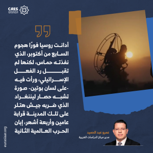 قرابة عقدين انقضيا منذ ذلك الحين، شهدت خلالهما المنطقة أحداثًا دراماتيكية ومأساوية، أهمها ما يجري في قطاع غزة من حرب تشنها إسرائيل -ولا تزال- على سكان القطاع في أعقاب هجوم السابع من أكتوبر (تشرين الأول) الذي نفذته حماس، وأدانته موسكو في حينه، لكنها لم تقبل برد الفعل الإسرائيلي، ورأت فيه -على لسان بوتين- صورة تشبه حصار ليننغراد الذي ضربه جيش هتلر على تلك المدينة قرابة عامين وأربعة أشهر، إبان الحرب العالمية الثانية!